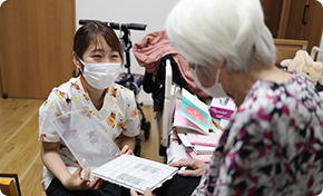 介護方法の相談や助言、社会資源の活用相談、退院支援や外泊中の看護